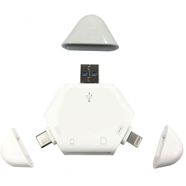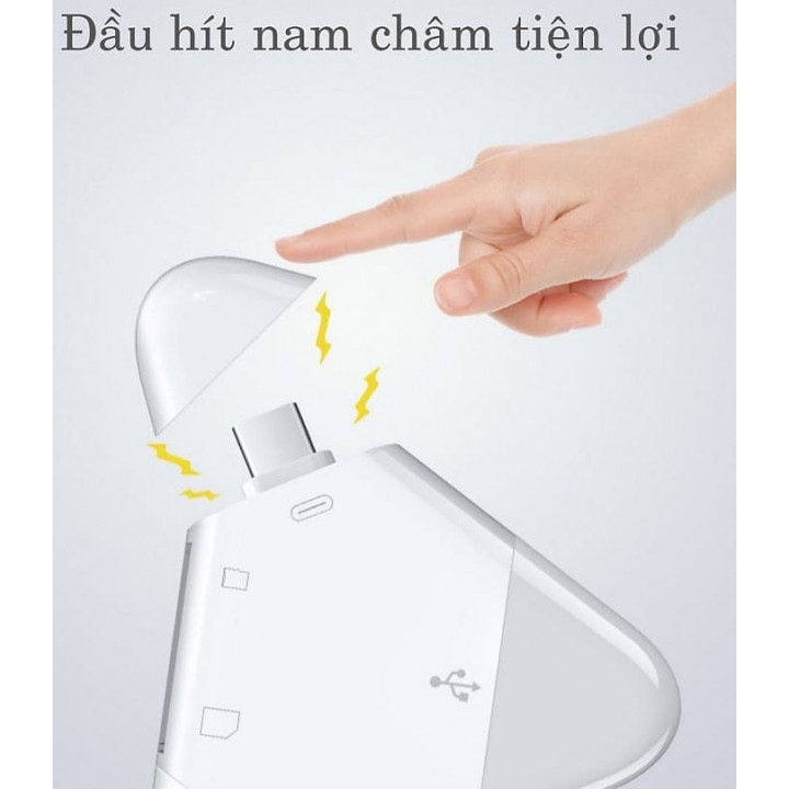 Đầu đọc thẻ OTG 3 in 1 hình tam giác đầu hút nam châm cực chất