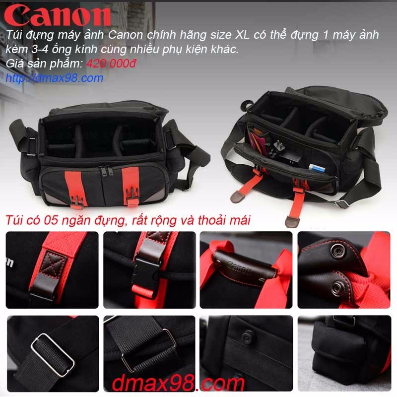 Các bạn lưu ý: Túi đựng máy ảnh Canon trên thị trường có rất nhiều Size, có những túi đựng máy ảnh canon Size S, M, L có giá rẻ hơn nhưng chỉ đựng được 1 Body và 1 ống kính, các bạn cần kiểm tra kỹ để tránh tiền mất tật mang.